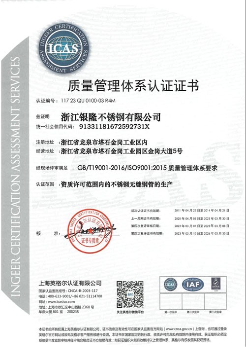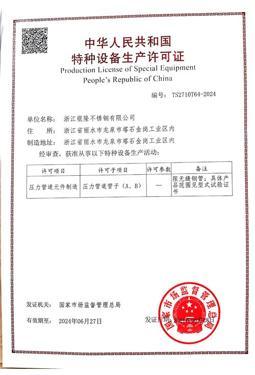浙江銀隆不銹鋼有限公司創(chuàng)始于2006年,是一家專業(yè)生產(chǎn)不銹鋼無縫管的企業(yè)。公司位于浙江麗水市,企業(yè)注冊(cè)總資金貳億壹仟柒佰肆拾玖萬元,擁有4家工廠,占地總面積11萬平方米,職工530人,年產(chǎn)不銹鋼無縫管5萬噸。